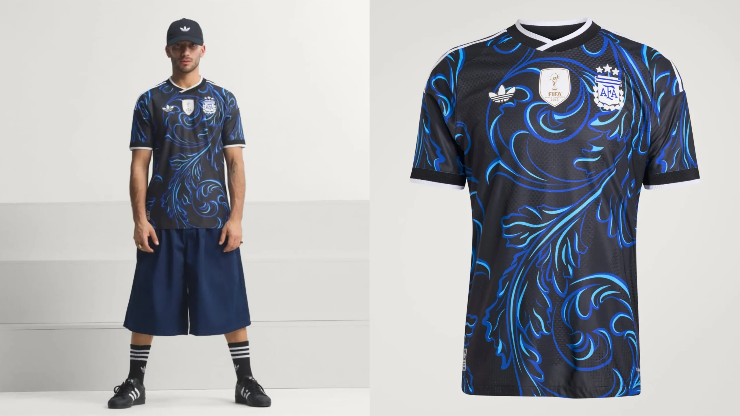 La versión alternativa presenta una base negra con detalles en azul, celeste y blanco. Según explicó la marca, el diseño busca representar distintas expresiones culturales de la Argentina. En la parte posterior del cuello suma además un logo con la palabra Argentina y el Sol de Mayo.