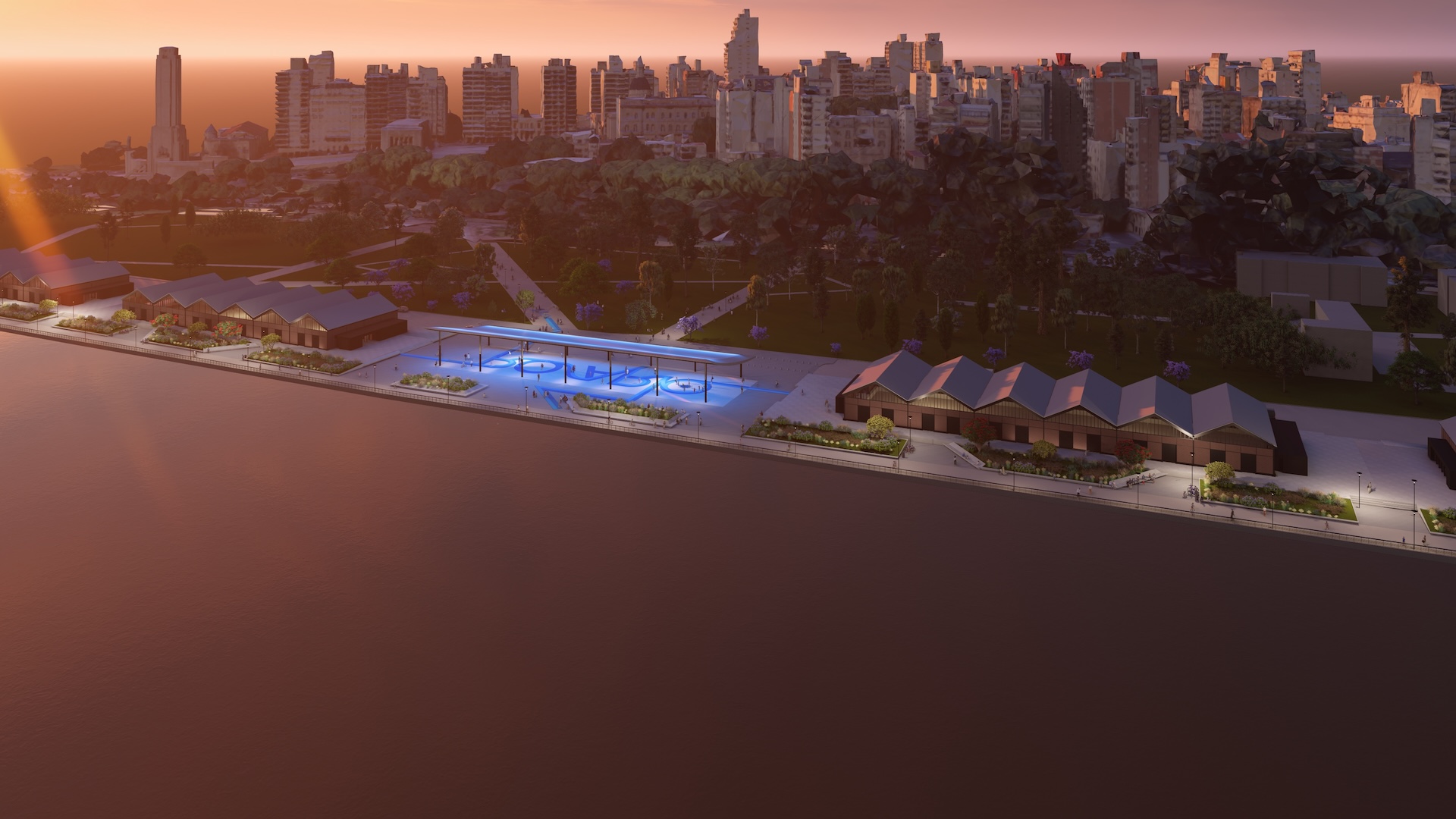 El proyecto sumó mobiliario urbano, áreas de descanso y un sistema de iluminación específico que destaca tanto las estructuras patrimoniales como las nuevas instalaciones. La propuesta busca consolidar un corredor accesible, activo durante todo el día y con mayor presencia nocturna.