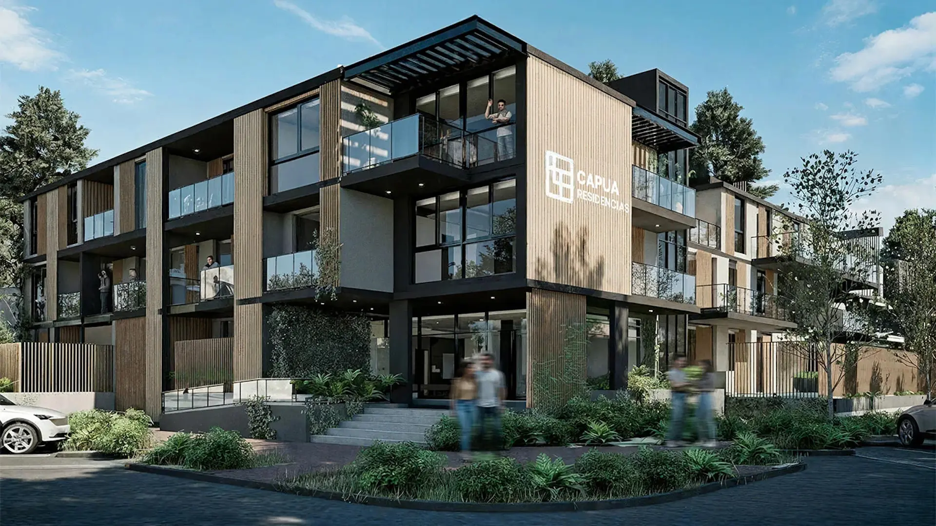 Las residencias de Capua estarán disponibles en tipologías de uno, dos y tres dormitorios, orientadas a ofrecer mayor confort y eficiencia en los espacios habitables. El paseo comercial incluirá propuestas gastronómicas y locales de distintos rubros, consolidando un entorno integral de servicios.